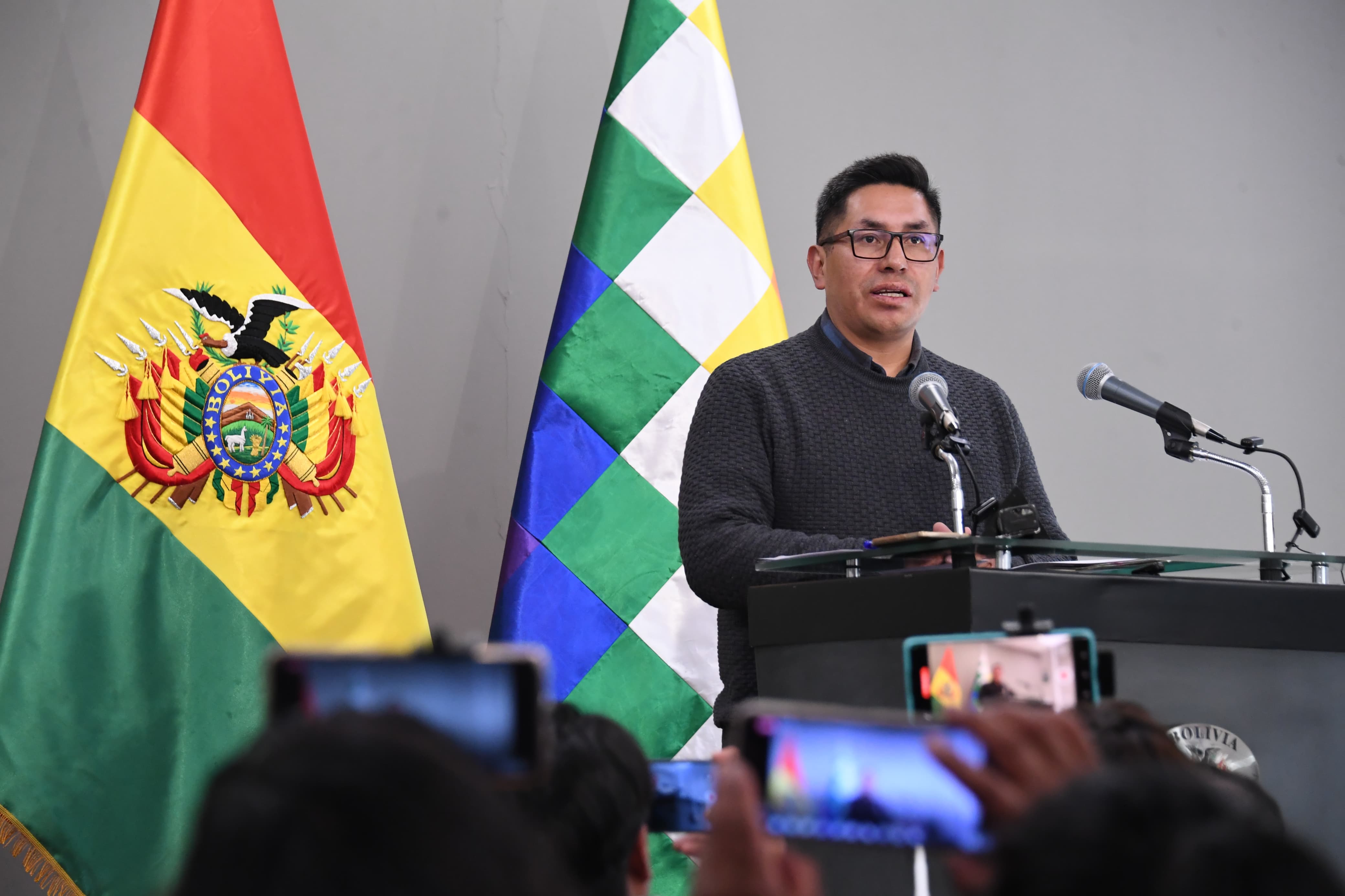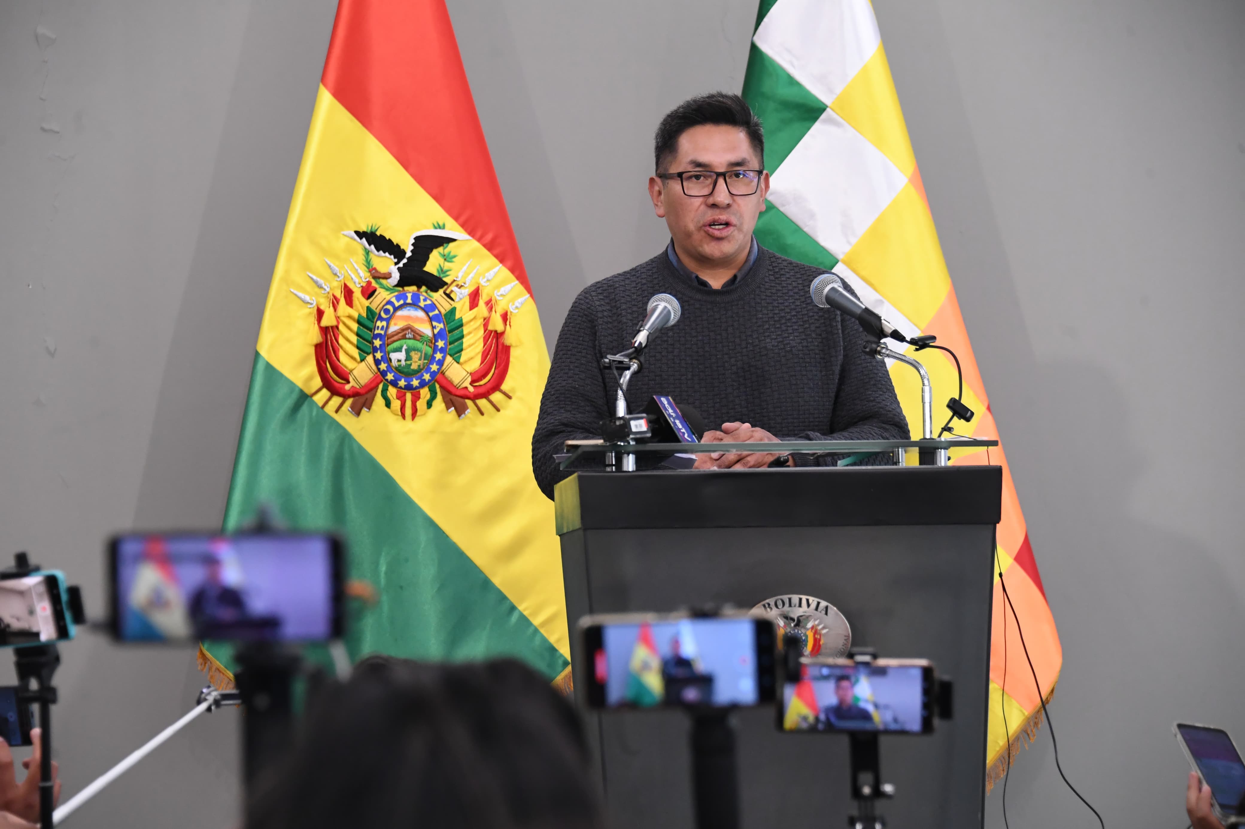 El ministro de Desarrollo Productivo, Zenón Mamani, en conferencia de prensa, en Casa Grande del PuebloUsuario ABIGalería Fotográfica 14 Mayo 2025 Visto: 402ShareTwittearshare with Whatsappshare with TelegramFotos: ABI / Josué Cortéz AnteriorSiguiente