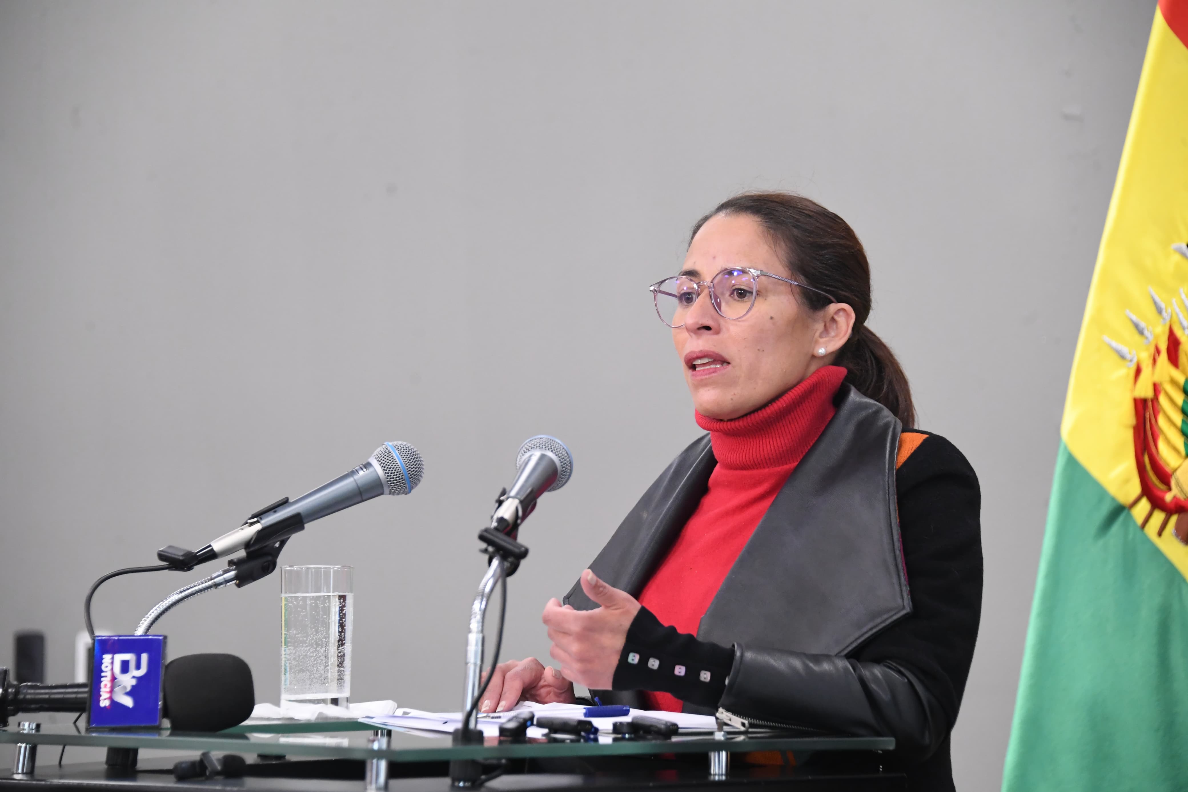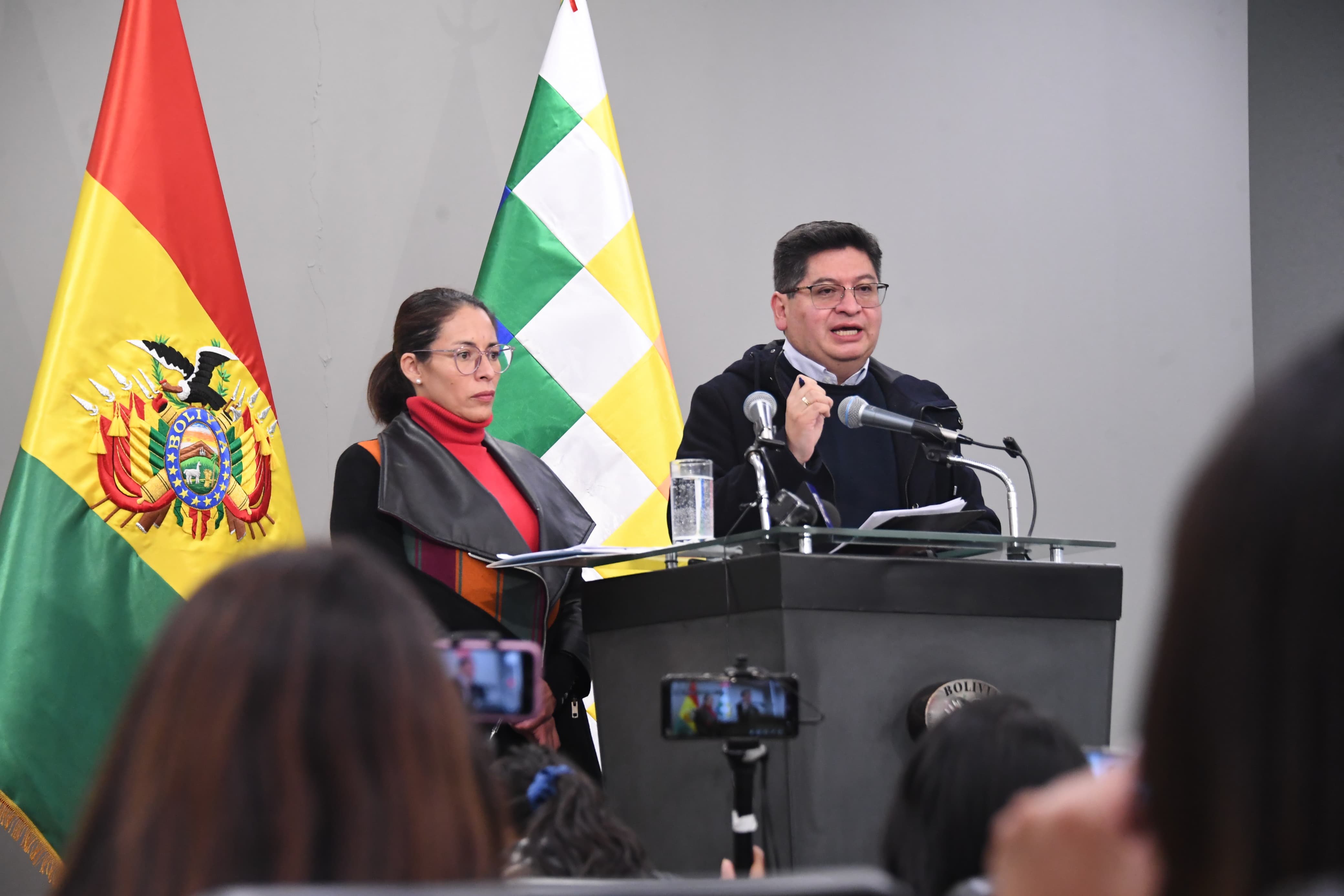 La ministra de Justicia, Jessica Saravia, y el ministro de Economía, Marcelo Montenegro, en conferencia de prensaUsuario ABIGalería Fotográfica 18 Junio 2025 Visto: 456ShareTwittearshare with Whatsappshare with TelegramFotos: Josue Cortez / ABI AnteriorSiguiente