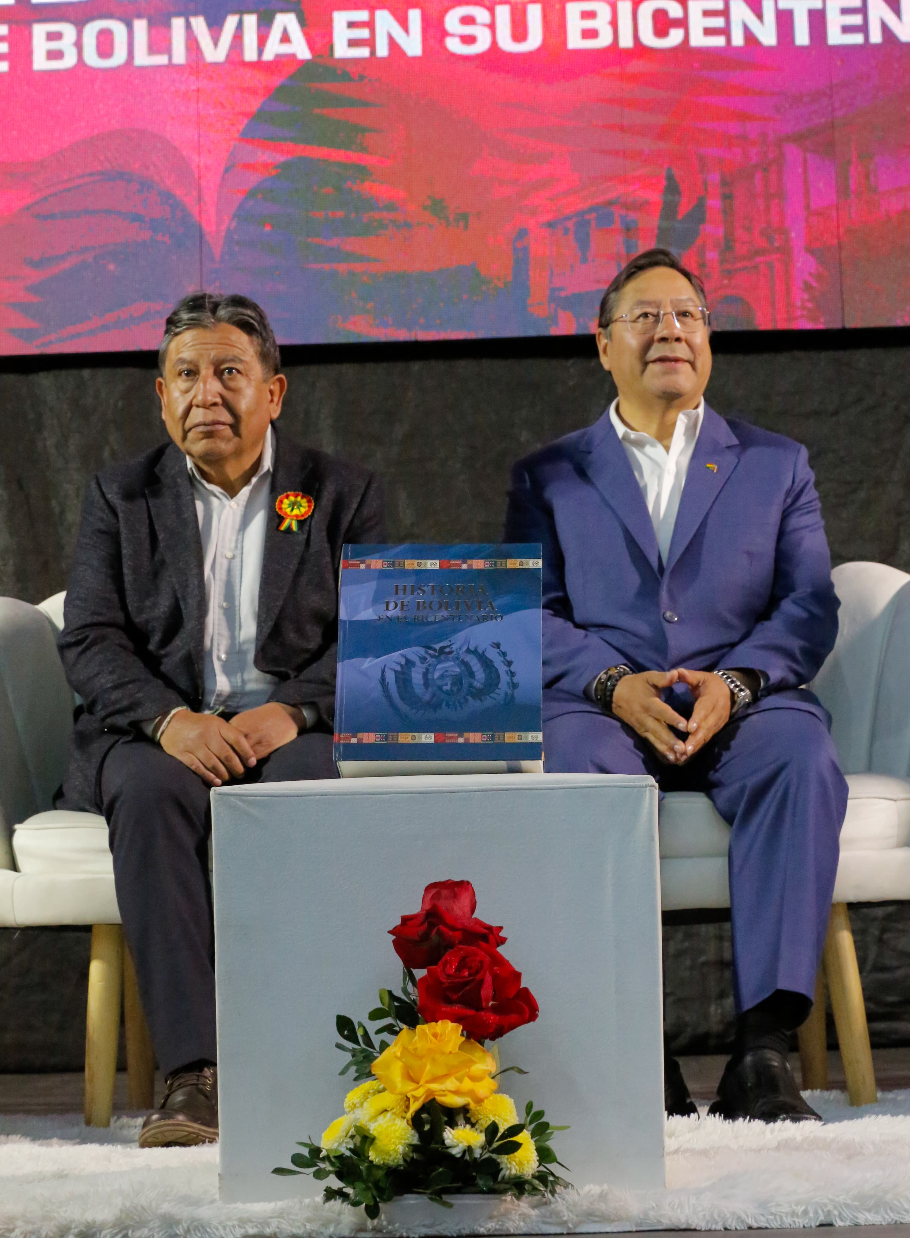 El presidente del Estado Plurinacional de Bolivia, presenta en Sucre el "Libro de la Historia de Bolivia en su Bicentenario" Usuario ABIGalería Fotográfica 19 Agosto 2025 Visto: 325ShareTwittearshare with Whatsappshare with TelegramFuente: Comunicación Presidencial AnteriorSiguiente