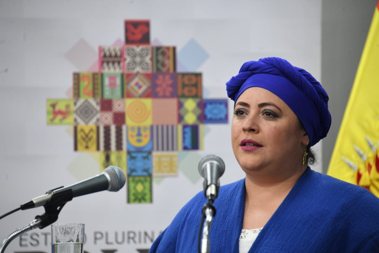 La ministra de la Presidencia, María Nela Prada, en conferencia de prensa en la Casa Grande del PuebloShareTwittearshare with Whatsappshare with Telegram FOTOS: Josue Cortez / Viceministerio de ComunicaciónAnteriorSiguiente