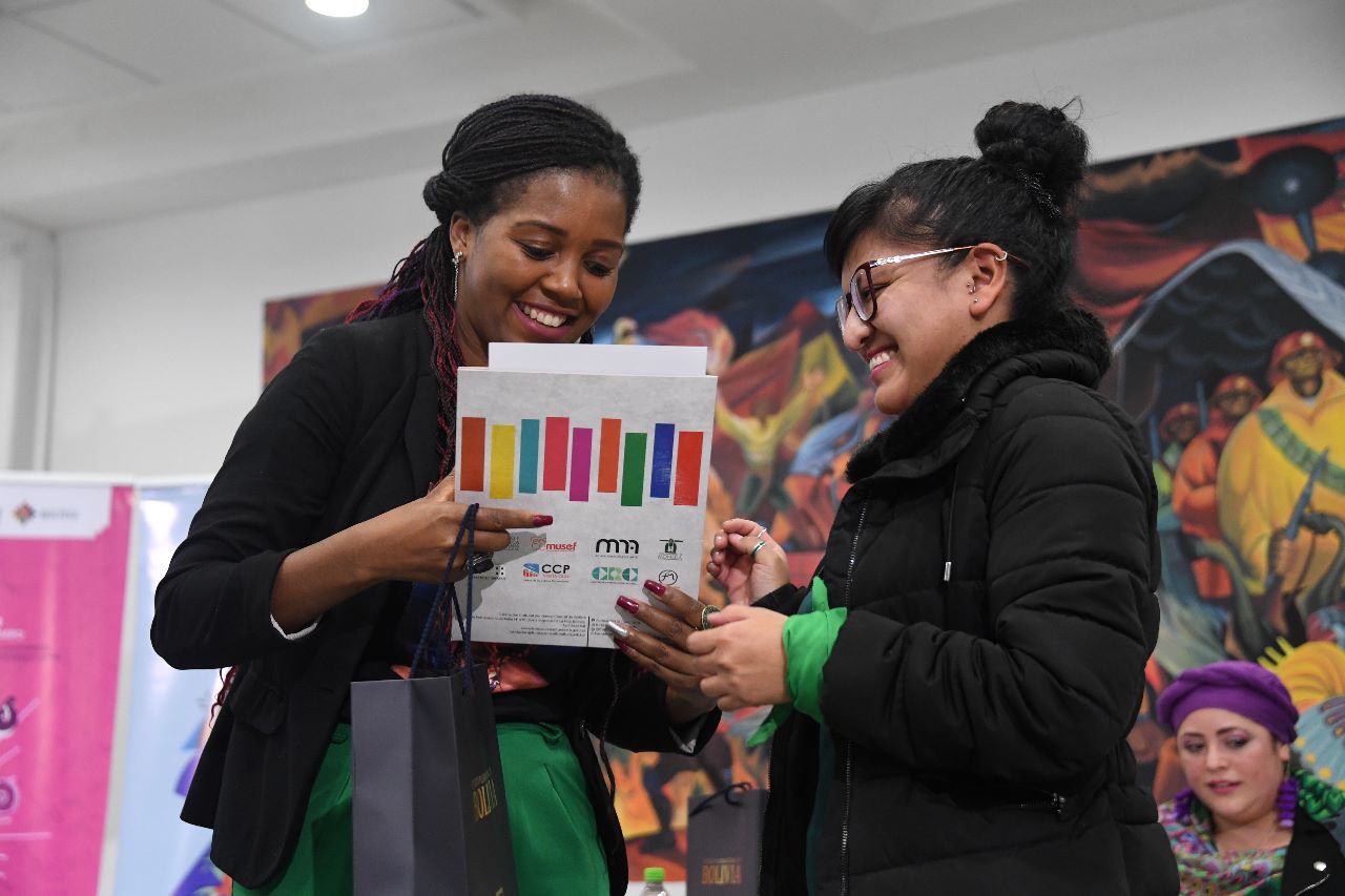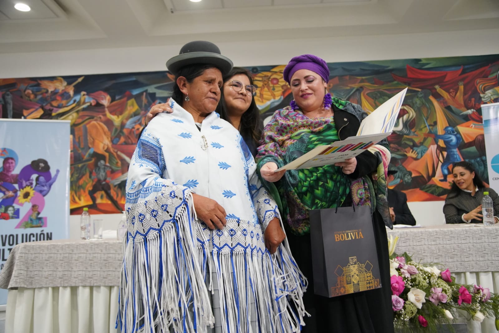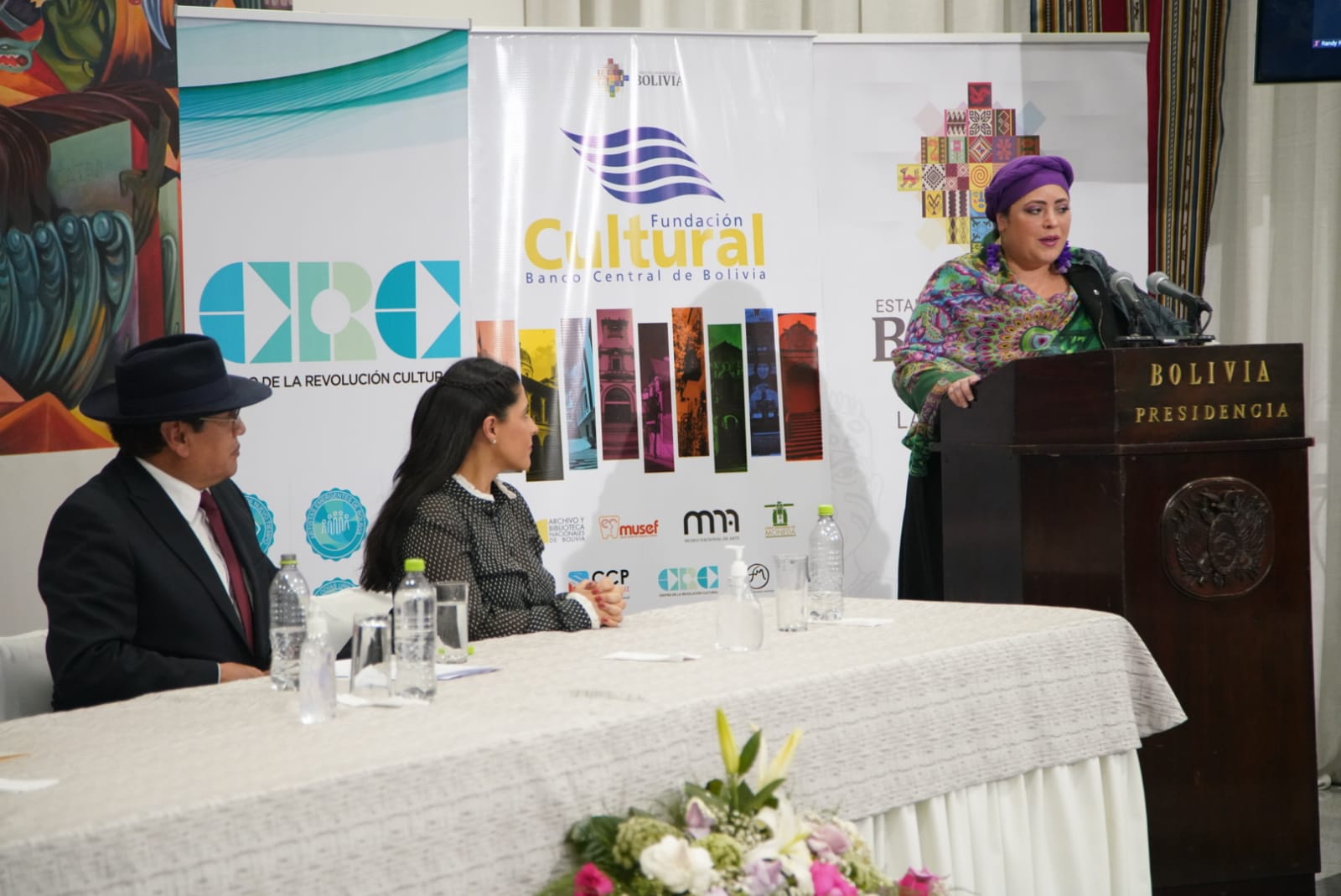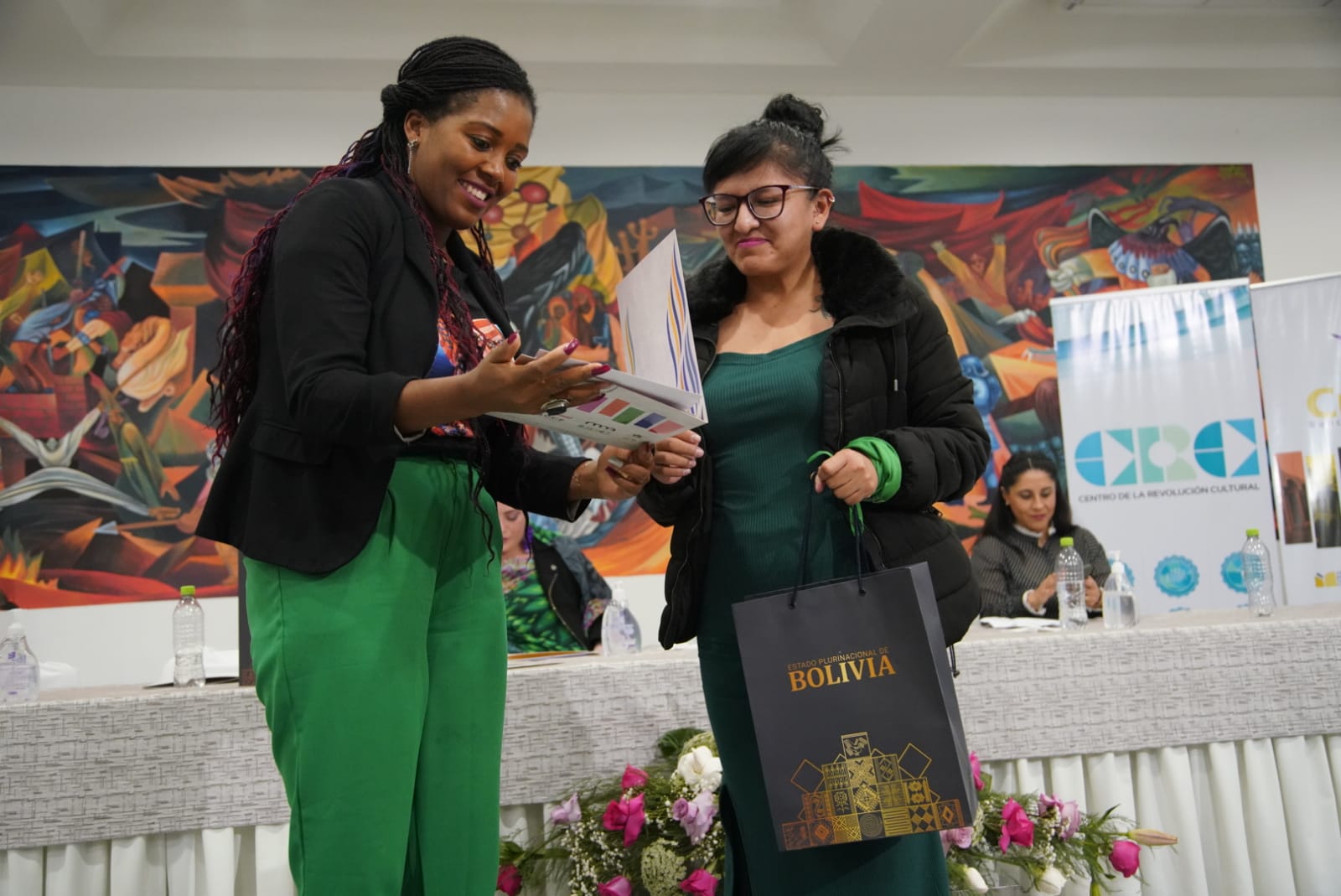 Acto de premiación de las ganadoras y ganadores de la 7ma Convocatoria Letras e Imágenes del Nuevo TiempoShareTwittearshare with Whatsappshare with Telegram Fotos Jorge Mamani / AEPAnteriorSiguiente