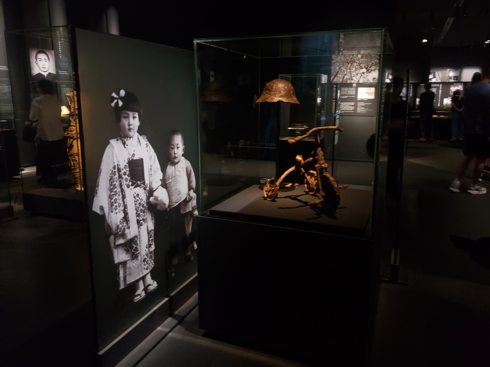 “Años después, Nobuo decidió colocar los restos de Shinichi en una tumba familiar. Cuando los desenterró, encontró el cráneo de Shinichi intacto dentro del casco”, se oye relatar a través de la audioguía sobre la trágica muerte del niño.