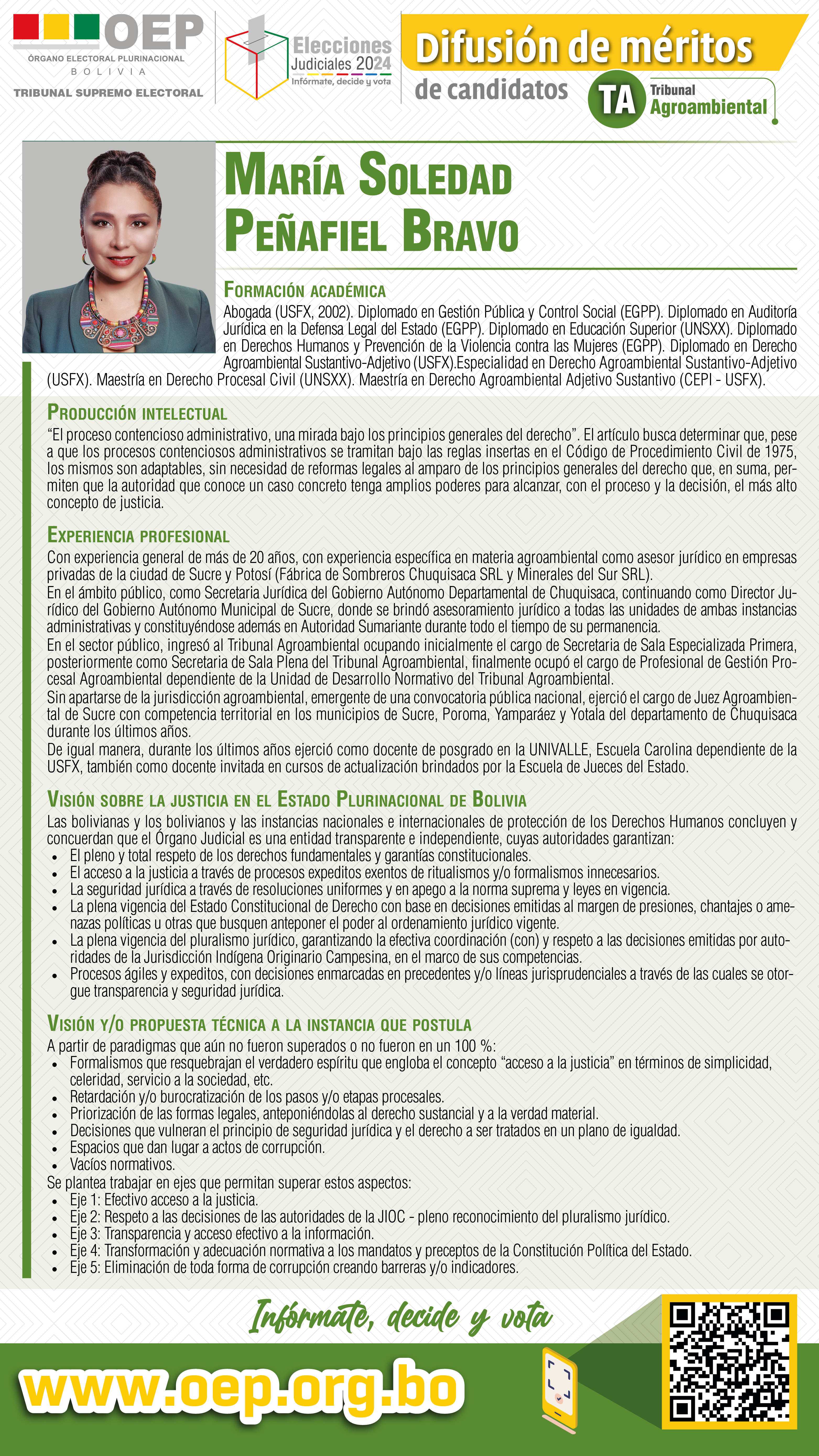 ELECCIONES JUDICIALES: Conozca a la candidata al Tribunal Agroambiental, María Soledad Peñafiel Bravo