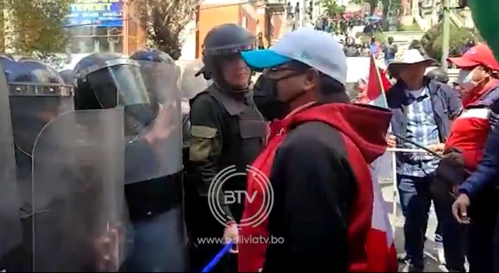Algunos dirigentes arremetieron contra los uniformados con petardos e incluso pinturas. Los efectivos tuvieron que utilizar gases lacrimógenos para dispersar al grupo que empezaba a generar violencia.