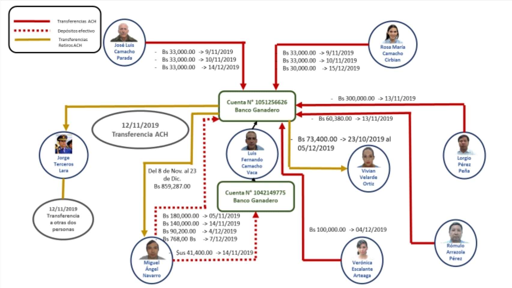 Los familiares de Camacho están presuntamente involucrados en movimientos económicos y transferencias que se habrían llevado a cabo durante la crisis de 2019, la cual resultó en la renuncia del entonces presidente Evo Morales.