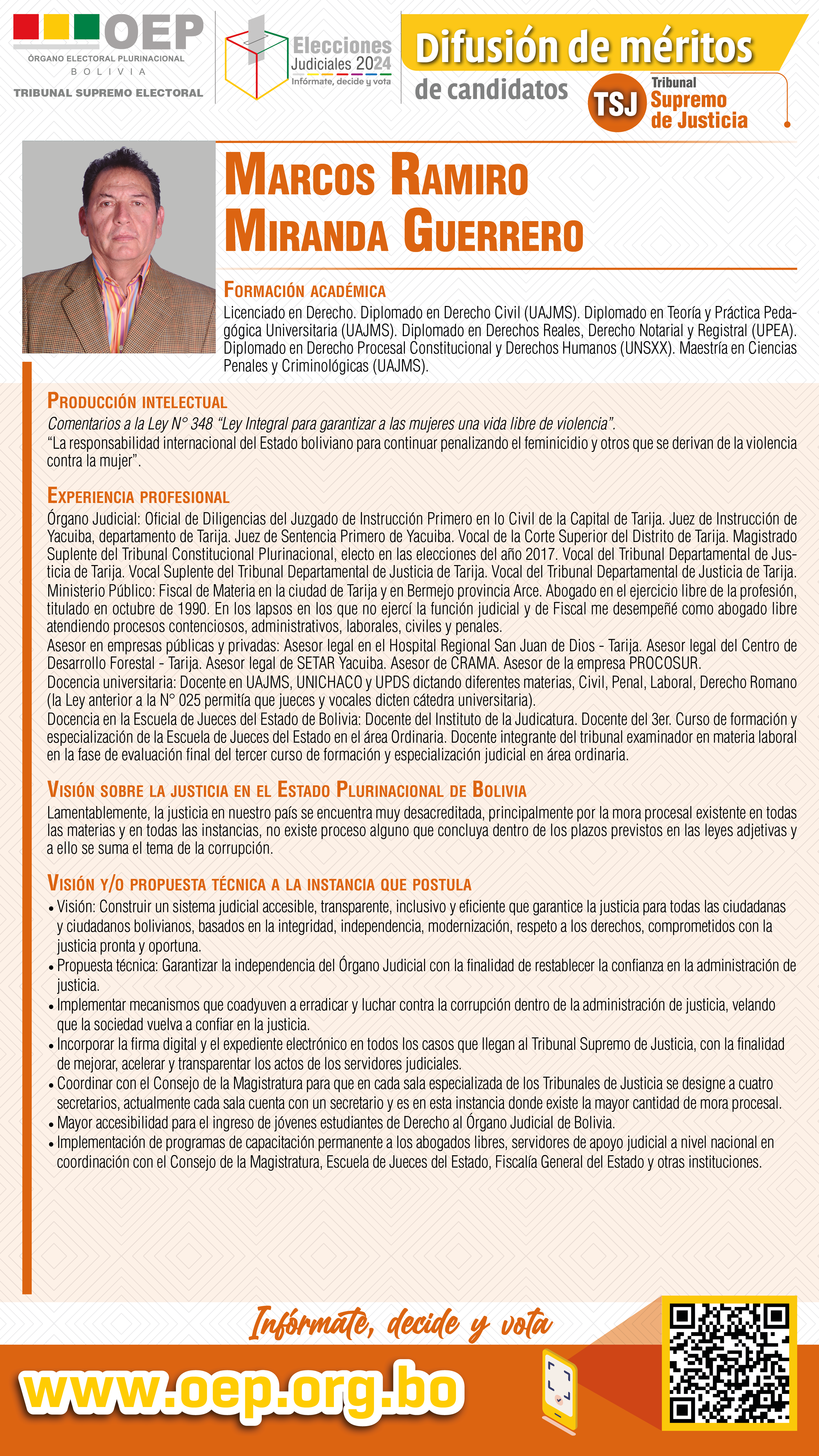 ELECCIONES JUDICIALES: Conozca al candidato al TSJ por Tarija, Marcos Ramiro Miranda Guerrero