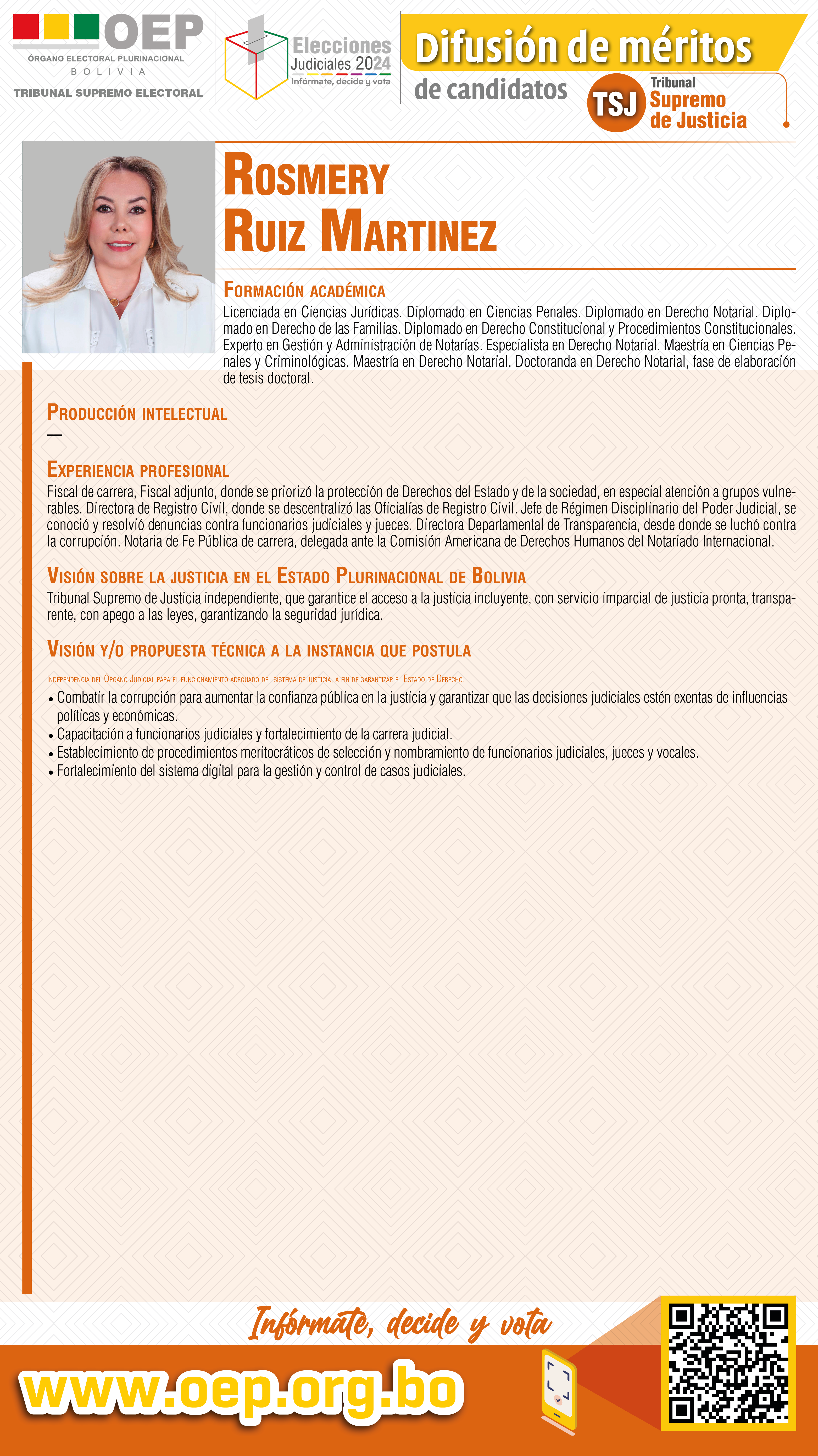 ELECCIONES JUDICIALES: Conozca a la candidata al TSJ por Tarija, Rosmery Ruiz Martinez